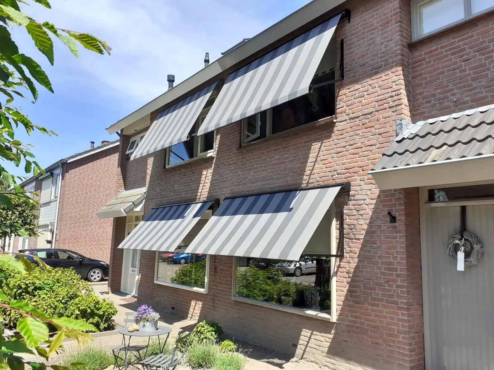 Uitvalschermen hebben dezelfde functie als screens. Ze worden vaak gekozen omdat ze een open, ruimtelijk gevoel behouden. Je kunt namelijk eenvoudig onder of langs het scherm kijken, waardoor je niet het gevoel hebt opgesloten te zitten. Bovendien zorgen uitvalschermen voor een sfeervol, diffuus licht, waardoor je buitenruimte een aangename en gezellige sfeer krijgt, zelfs als de zon fel schijnt. Ook erg geschikt als zowering op je balkon!